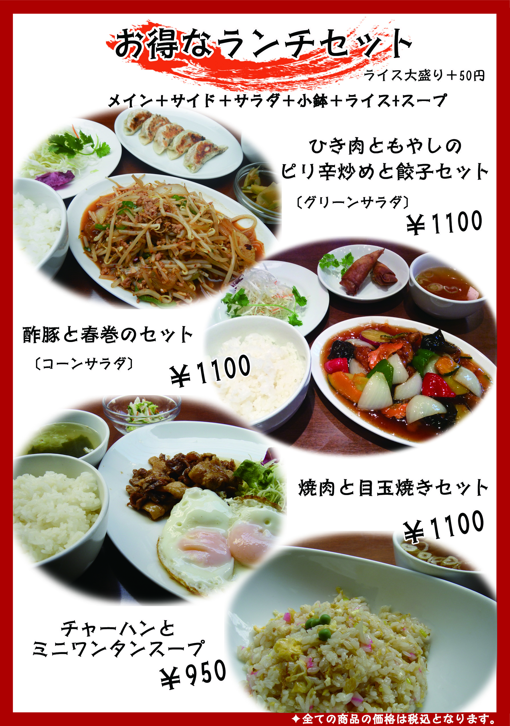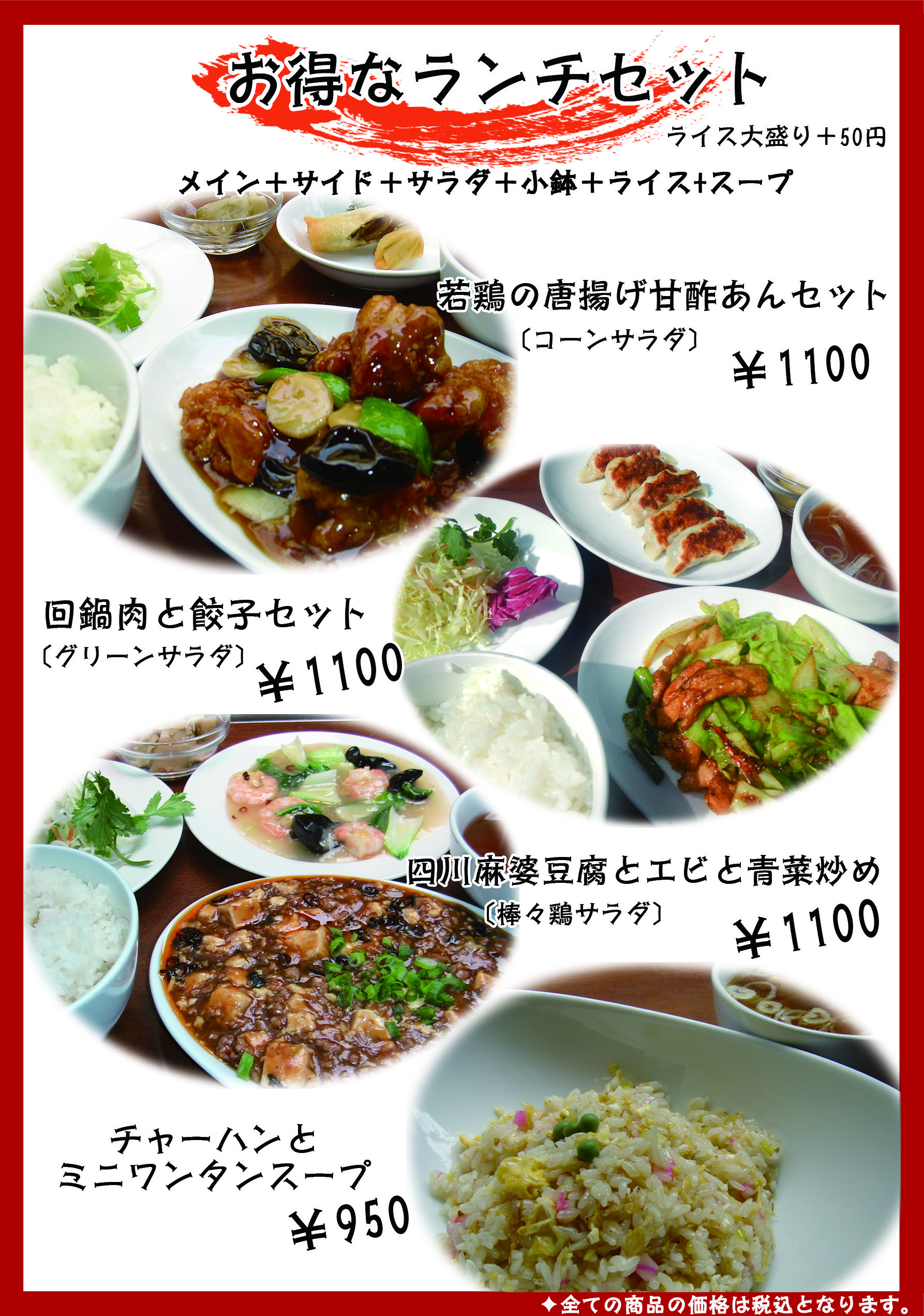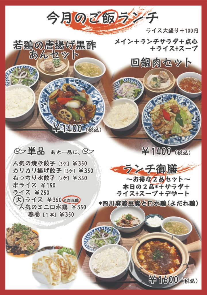 【メイン+ランチサラダ+点心+ライス+スープ】